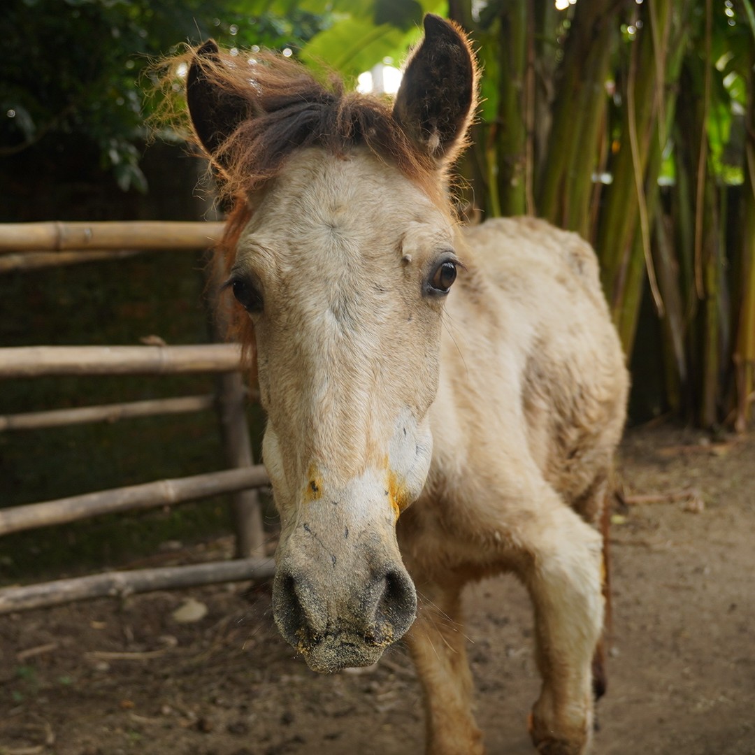 Chhoti, an 8-9 month old female mule, was rescued from Sidhbari after a dedicated search for help by her informer. She once had owners, but due to an old front leg injury that had slowly healed, she was abandoned and left to survive on her own. Though the fracture eventually healed, Chhoti still had a wound needing urgent care. In our care, Chhoti received the treatment and attention she needed to make a full recovery. Now, she's found companionship with Chakor, another female mule who is blind. Together, they live in our sanctuary, part of our resident animal family for life. Chhoti's journey to healing and her new life wouldn’t have been possible without compassionate supporters. Your sponsorship can help us continue caring for her and other animals like her who need a permanent, safe home.